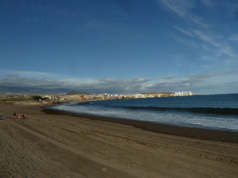 Po letu jsme se vydali odpočívat na pláž v El Medánu, i na konci listopadu tu byla oceánská voda příjemně teplá a co víc, pláž s tmavým sopečným pískem téměř jen pro nás. U El Medána je také přírodní rezervace lákající k procházce a pozorování ptactva a přestože je poměrně blízko letiště Tenerife Sud, letadla tady neruší.