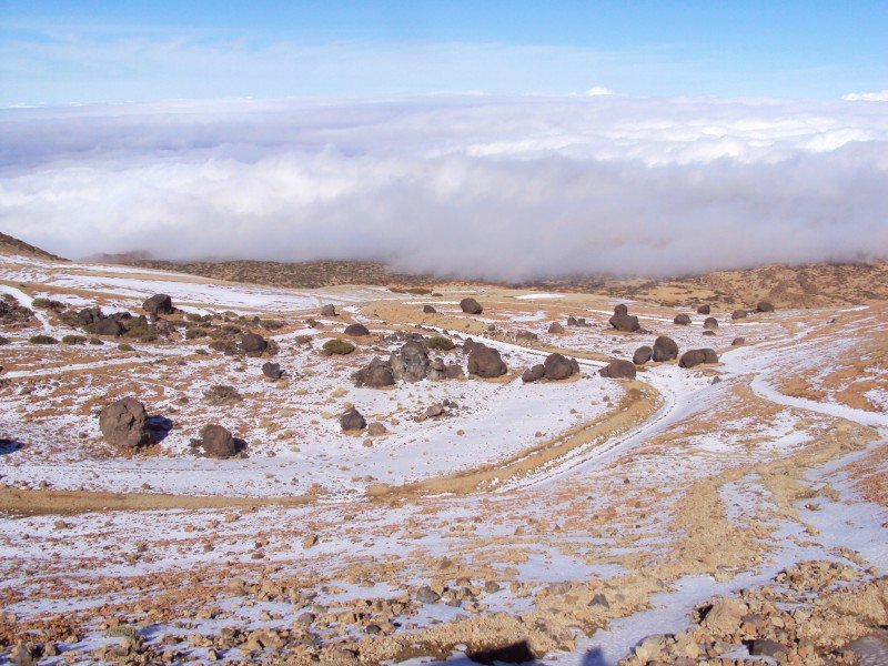Je větrno a postupně se objevuje sníh, v 3200 m, u ubytovny, je také mlha. Přesto se náš československý Erasmus tým raduje, část z nás je v nejvyšší výšce v životě, nejjižněji a nejzápadněji. Od správce se však dozvídáme, že od severu ostrova přichází bouře a že další výstup, ve kterém jsme měli v plánu pokračovat ráno, je nebezpečný, obzvlášť bez maček.