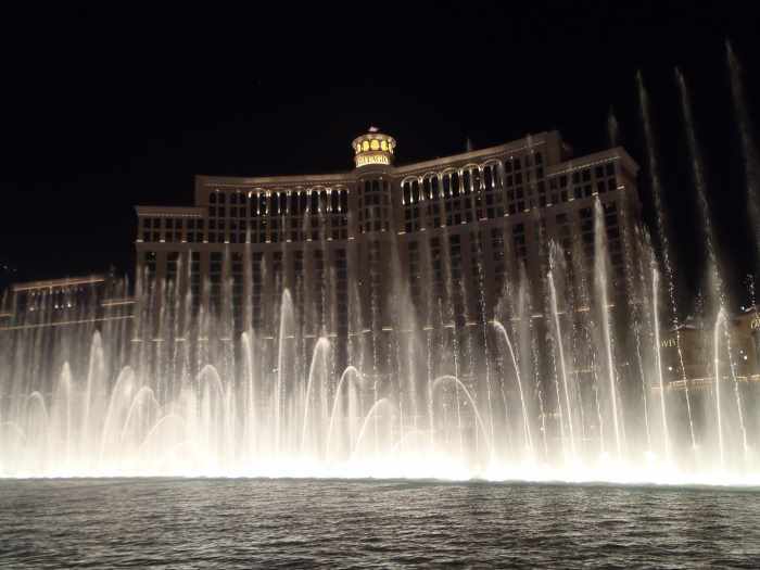 Do večerního Las Vegas jsme vyráželi někdy kolem deváté hodiny večer. Vzhledem k tomu, že se náš motel nenacházel na docházkové vzdálenosti k centru, jsme si na odvoz zavolali taxík. Ten nás odvezl přímo do centra na hlavní promenádu, kde se nachází nejvíce atrakcí, kasín a známých kýčovitých budov. Ulice už byly dávno zalidněné, všichni už slavili a nebo seděli u automatů či karetních her a zkoušeli své štěstí. Potkáte tu nejrůznější lidi, v kostýmech nebo ty, co se právě vzali v jedné z kaplí na ulici. V celém Las Vegas je všechno obecně levnější, protože jeho hlavní zisk je právě to, co naházíte do automatů, či prohrajete v kartách. Pro nás byl i zážitek vejít do jakéhokoliv kasína a jen pozorovat probíhající hry. Neskutečně různých automatů, že ani nevíte, co kde vlastně mačkat a co jak funguje. U každého stolu stojí krupiér a obsluhuje nebo čeká, kdo se přidá na hru. A takhle tam stojí až do rána. Někteří členové naší výpravy se také na pár her zapojili a musím říct, že následovala výhra i prohra. Já jsem své štěstí také zkusila vhozením pár dolarů do automatu, ale to bylo naposledy, kdy jsem ty peníze viděla. Milionář se tam ze mě nestal. Také jsme se šli projít celou ulicí a najednou se ocitli v Paříži, Benátkách, Egyptě či New Yorku. Zastavili jsme se také u kasína s fontánou, která v určité intervaly hraje a tak tvoří velkolepou podívanou. K ránu jsme si opět zavolali taxík na motel, abychom se ještě trochu vyspali, protože nás druhý den čekal ještě další program.