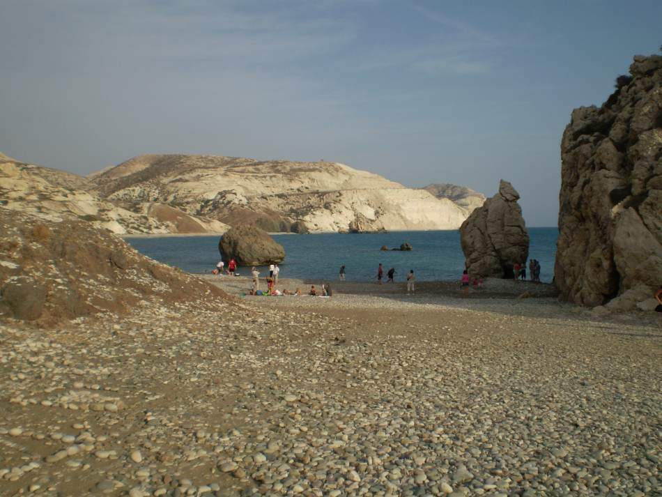 Tato pláž je dozajista jedno z nejvíce mýtických míst ostrova. Zde se totiž dle báje zrodila bohyně Afrodita. Pláž je celá oblázková a v moři se nachází několik útesů. Jeden z nich pak opravdu připomíná Afroditu ležící v moři. K tomuto místu se váže pověst, že pokud se na pláži smočíte, zkrásníte a omladí vás to. Pokud si na pláži najdete oblázek ve tvaru srdce má vám to přinést štěstí v lásce.