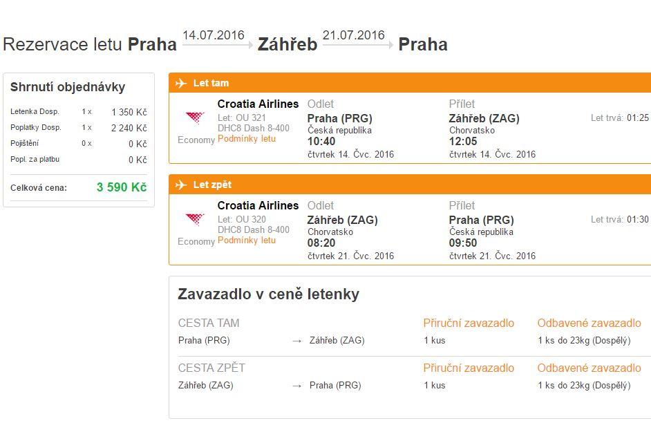 - Příkladný termín letenky z Prahy do Záhřebu za 3 590 Kč