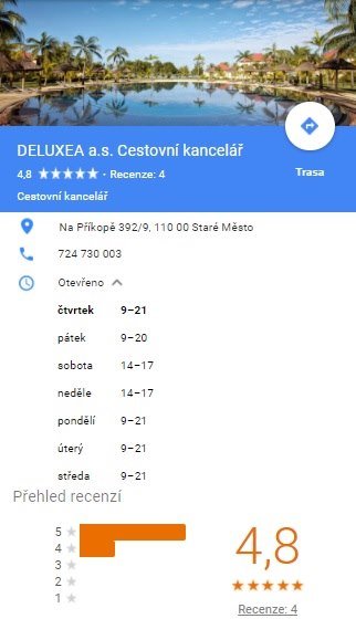 - hodnocení CK na Googlu: 4,8/5 bodů (od 4 klientů)
