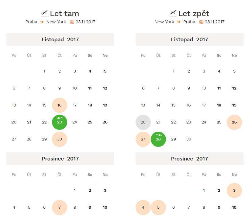 Letecká společnost TAP Portugal má stále vypsanou akční letenku z Prahy do New Yorku s jediným mezipřistáním v Lisabonu. Termíny jsou k nalezení od listopadu do konce února a lze tak nakombinovat například termín s odletem z Prahy 23. listopadu a návratem 28. listopadu (tedy čtvrtek až úterý). Ačkoliv si můžete udělat dovolenou v New Yorku i v lednu nebo únoru osobně bych Vám doporučoval spíše měsíc listopad. Teploty nejsou ještě tak mrazivé a u nás se toho v listopadu nedá moc podnikat.