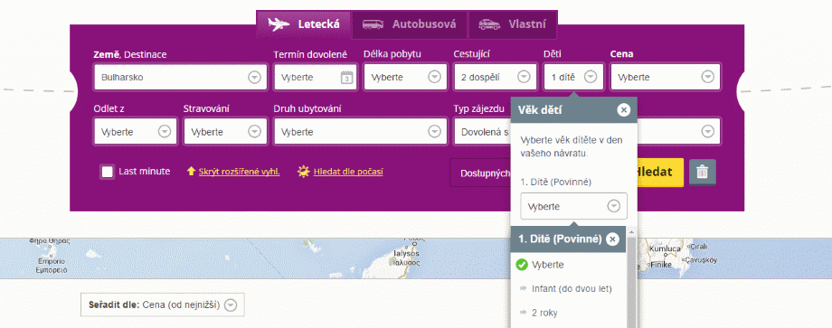 - Do filtru zadejte počet dětí i jejich věk