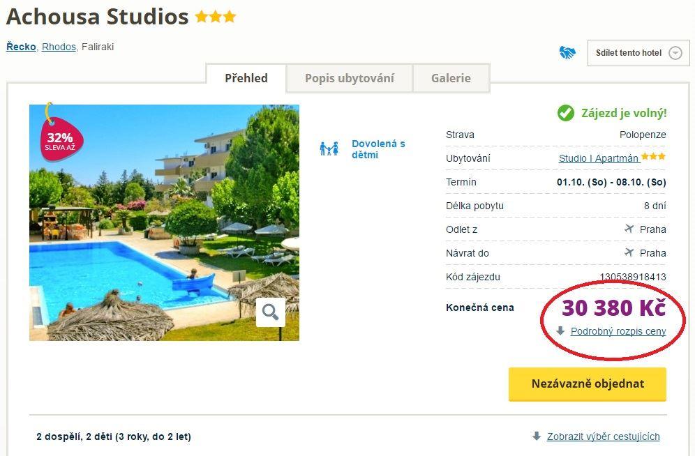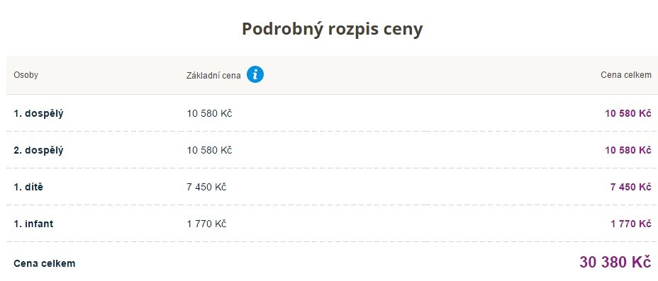 - Podrobný rozpis ceny všech dětí i dospělých na daném zájezdu