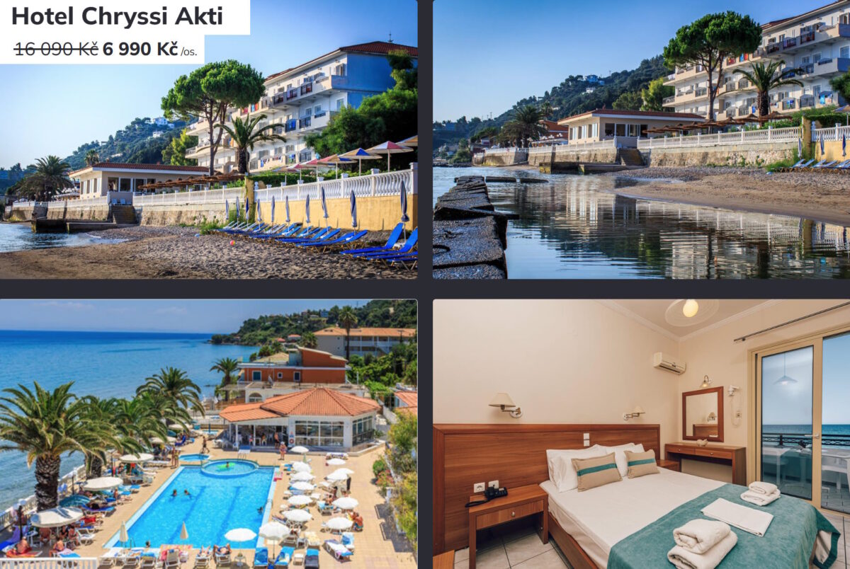 Super last minute dovolená na řeckém ostrově Zakynthos s odletem z Brna je aktuálně nejlevněji za 6.990 Kč. Hotel je na krásném místě se soukromou písečnou pláží, nicméně recenze interiéru budovy jsou dost smíšené.