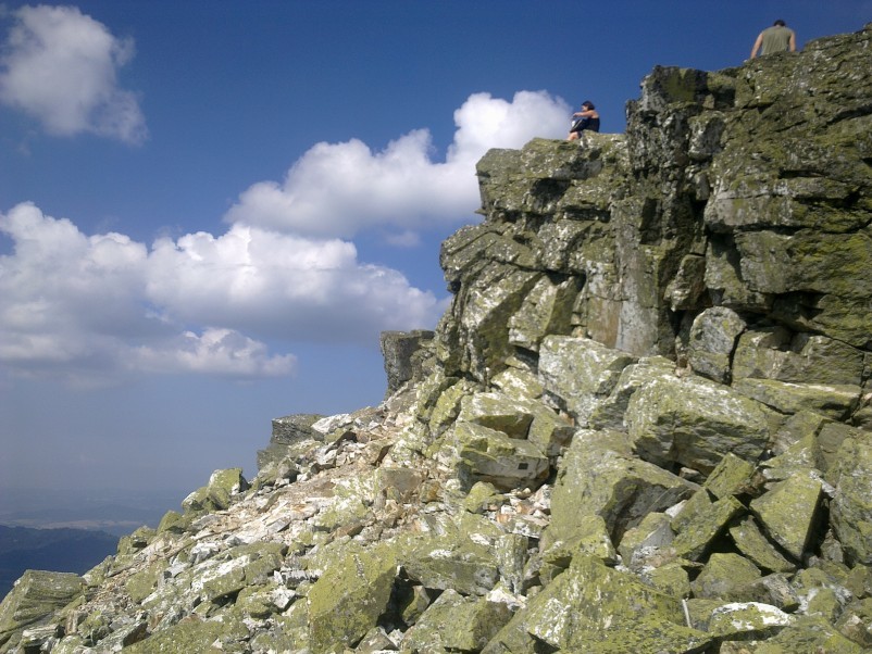 Nevím, co za hloupost nás dohnala k činu nejít po červené stezce a následně po zelené, nýbrž po asfaltce, kde se každou chvíli kymácel do kopce autobus přecpaný turisty, nebo kde svištěli dolů cyklisti a koloběžkáři. Jediné důvody byly asi následující: měli jsme před sebou ještě 12km, já už nemohla kvůli puchýřům skoro ani chodit a Tom, který není zvyklý na takové výšlapy, už měl jazyk na vestě. Došlapali jsme na Ovčárnu a vyrazili kamenitým stoupákem k Petrovým kamenům. Stezka/nestezka, zákaz/nezákaz, přelezli jsme na vrcholku nízký plot a štrádovali si to trávou až na Petrovy kameny doslova.