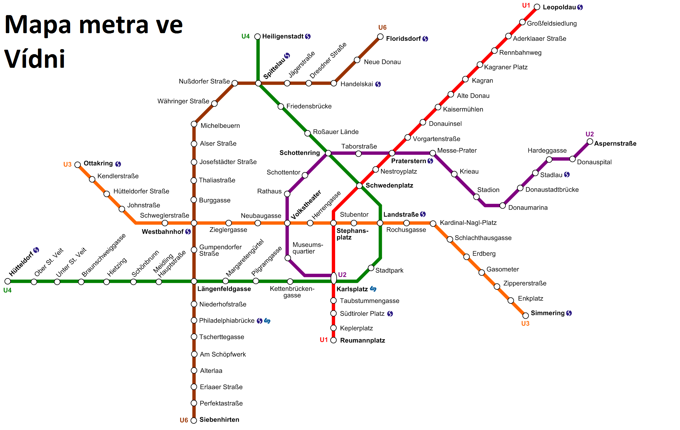 Jaká je cena jízdenky vídeňského metra a jak vypadá plánek metra (+trasy)? A kolik stojí lístek pro seniory (důchodce) pro MHD Vídeň? Hlavní město Rakouska je obrovské město a nachází se zde podobné dopravní prostředky, jako v Praze. Nejoblíbenější je metro neboli německy U-Bahn. Jednotlivé trasy metra ve Vídni jsou značené vždy písmenem a příslušným číslem (například U1, U2 atd). Metro pokrývá převážnou část města, zejména pak střed. Metrem se můžete snadno dostat prakticky kamkoliv potřebujete.