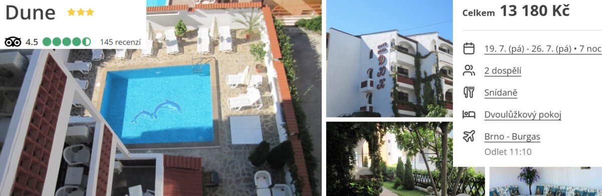 Super last minute s odletem z Brna do bulharského Burgasu včetně snídaně aktuálně vyjde na 6.590 Kč.