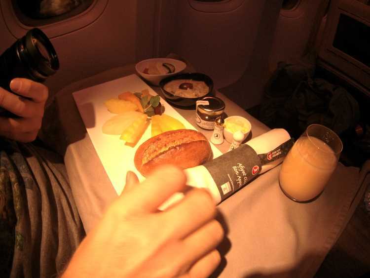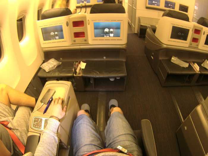 Jednalo se o mou první zkušenost s jinou než economy třídou a tak jsem si celých 12 hodin letu nesmírně užíval. Celý úsek byl operován novým B777-300ER. Bylo mi skoro líto spát, ale nutno podotknout že na rovném sedadle skvěle ustlaném jako postel jsem spal vkuse 8 hodin což se mi nikdy předtím v letadle nepodařilo. Poprvé jsem tak vystoupil z letadla čerství a odpočatý.