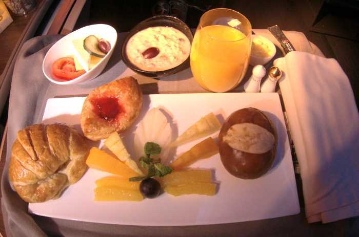- Snídaně při závěru letu z Istanbulu na Filipíny