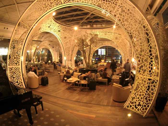 Po přistání v Istanbulu jdu rovnou v tranzitní zóně do letištního salonku v Istanbulu v kterém to velmi žije (stejně i při zpátečním letu). Najdete zde dvě patra různých dekorací a stovky míst k sezení. Mimo jiné jsou zde i sprchy, biliard, piano, kino, knihovnu, obrovský výběr ovoce, bary a samozřejmě jídelnu s kuchaři.
