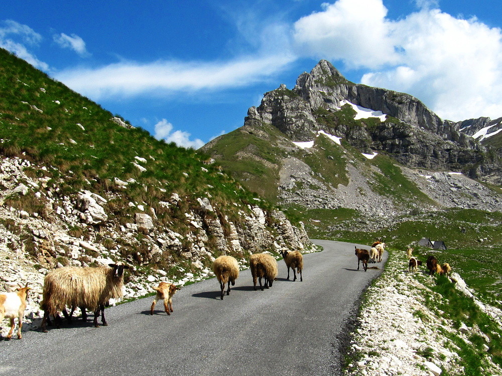 Na cestě přes pohoří Durmitor jsme potkali jen stáda krav, koz a ovcí.